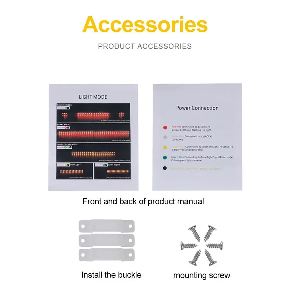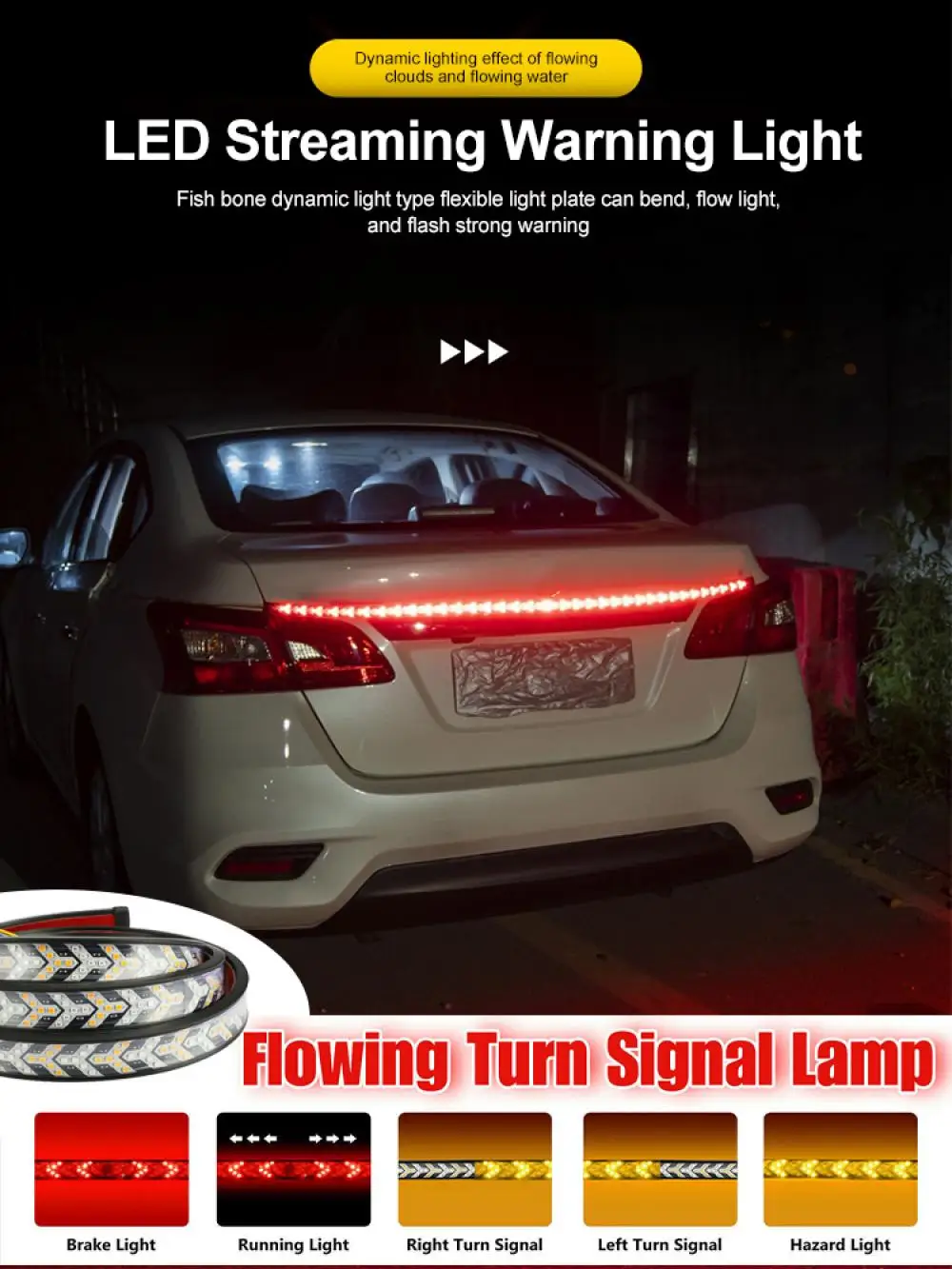 Car Strip Turn Signal Lamp Flowing Dynamic Warning Brake Reverse Tail Light Truck LED Tailgate Light Arrow LED Strip 12V 24V